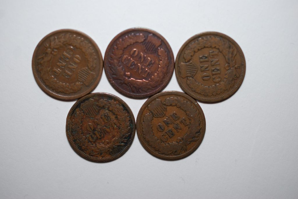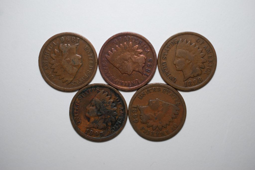 1895-1899 Indian Head One Cent; Consecutive Years; Lot of 5; EST. $5-15