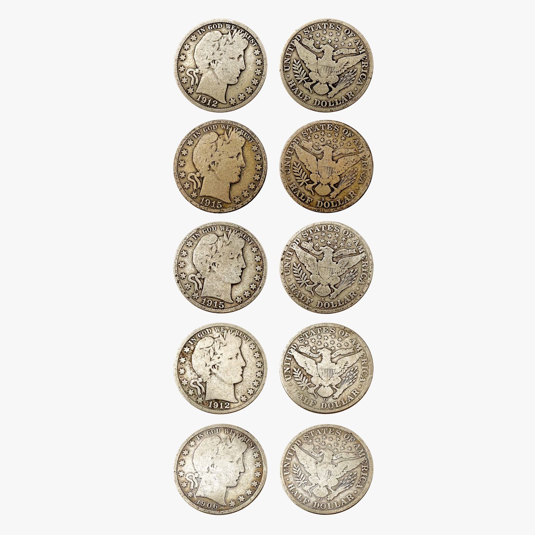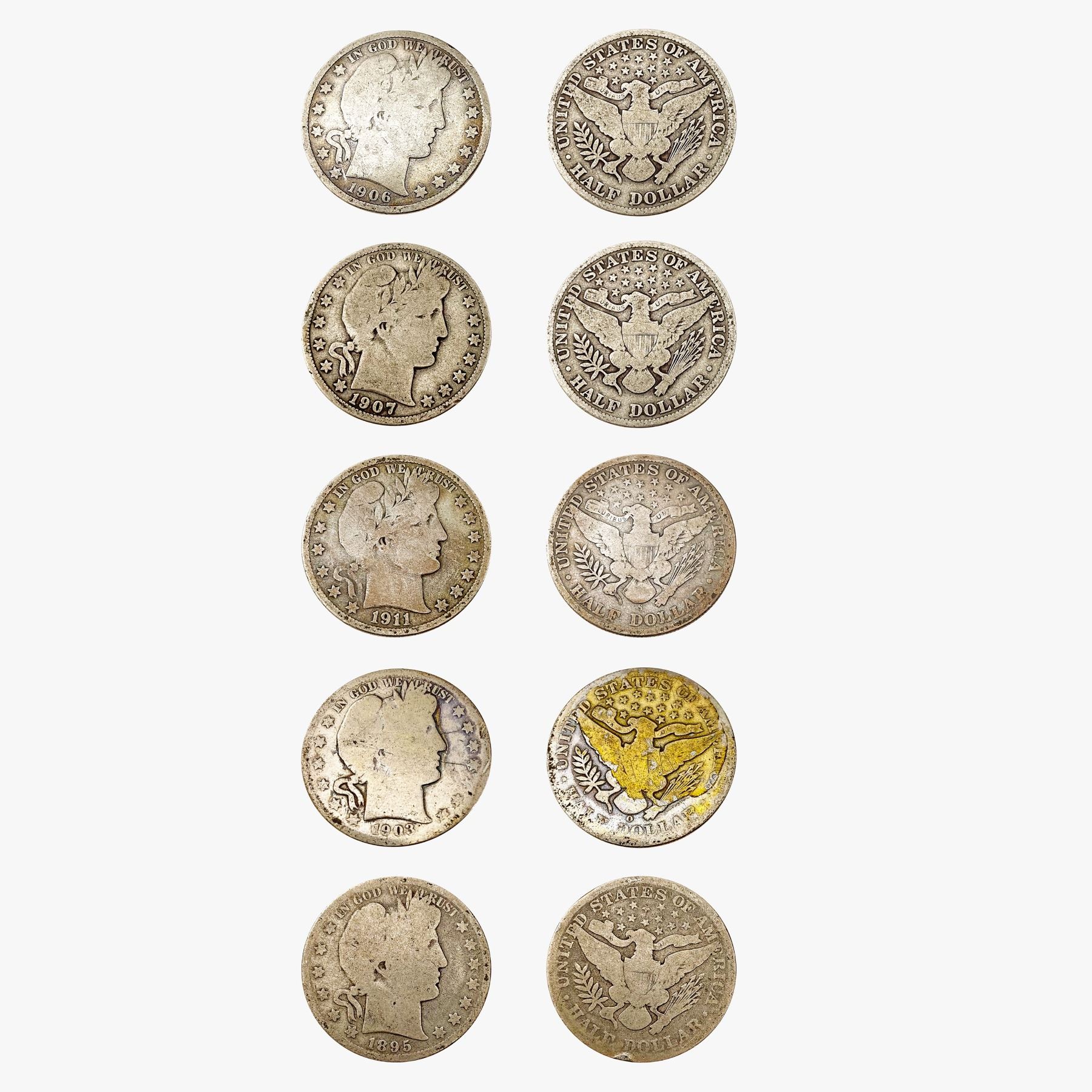 1895-1915 Barber Half Dollars [10 Coins]