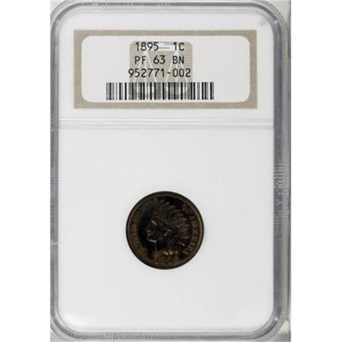 <B>1895 1C PR63 Brown NGC.</B></I> NGC Census: (8/38). PCGS Population (10/30). Mintage: 2,062. Numismedia Wsl. Price for NGC/PCGS coin in PR63: $160. (#2372)<BR><BR><B>Coin Engraver:</B> James B. Longacre<BR><BR><b>Shipping:</b> Coins & Currency (<a target="_blank" href="http://www.heritageauctions.com/common/shipping.php">view shipping information</a>)