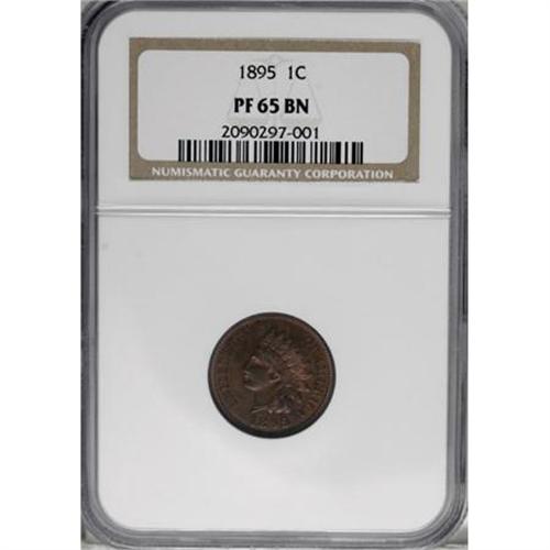 <B>1895 1C PR65 Brown NGC.</B></I> NGC Census: (18/6). PCGS Population (6/1). Mintage: 2,062. Numismedia Wsl. Price for NGC/PCGS coin in PR65: $260. (#2372)<BR><BR><B>Coin Engraver:</B> James B. Longacre<BR><BR><b>Shipping:</b> Coins & Currency (<a target="_blank" href="http://www.heritageauctions.com/common/shipping.php">view shipping information</a>)