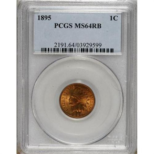 <B>1895 1C MS64 Red and Brown PCGS.</B></I> PCGS Population (132/20). NGC Census: (129/87). Mintage: 38,343,636. Numismedia Wsl. Price for NGC/PCGS coin in MS64: $100. (#2191)<BR><BR><b>Shipping:</b> Coins & Currency (<a target="_blank" href="http://www.heritageauctions.com/common/shipping.php">view shipping information</a>)