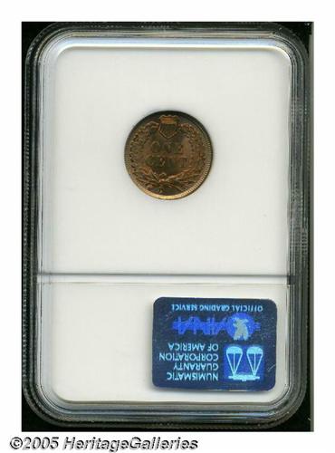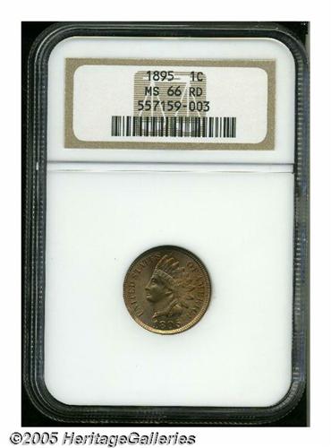<B>1895<1C> MS66 Red NGC.</B></I> Well struck except for the feathertips of the headdress, with sparkling, coruscant luster and lovely red-orange and mint-green toning. The matte-like, faintly granular surfaces have a few scattered flyspecks but seem mark-free, on obverse and reverse alike. Population: 12 in 66 Red, 1 finer (3/05).