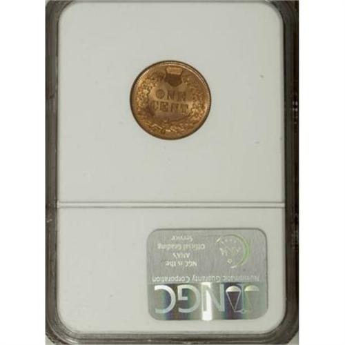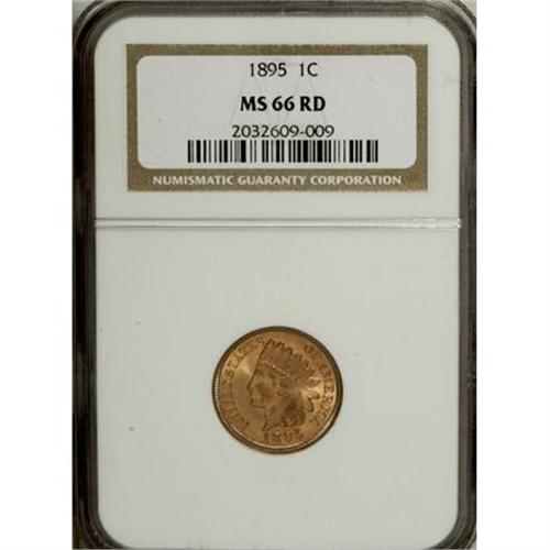 <B>1895 1C MS66 Red NGC.</B></I> Both sides are aglow in cherry-red luster that is undiminished by either toning or unsightly carbon. The smooth, rippling features are boldly defined in all areas. A virtually unimprovable example, hampered only by a pair of paper-thin blemishes on the neck. Census: 32 in 66, 7 finer (6/07).<BR><I>From The Santa Fe Collection.</B></I><BR><BR><B>Coin Engraver:</B> James B. Longacre<BR><BR><b>Shipping:</b> Coins & Currency (<a target="_blank" href="http://www.heritageauctions.com/common/shipping.php">view shipping information</a>\)