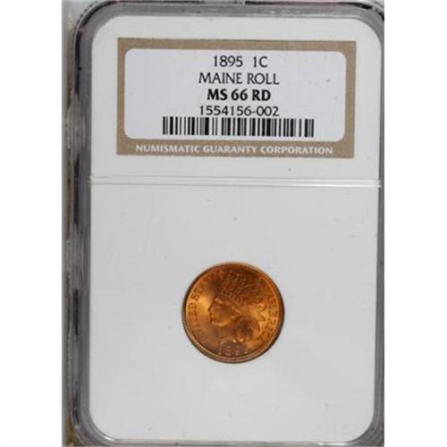 <B>1895 1C MS66 Red NGC.</B></I> Ex: Maine Roll. A gorgeous fire-red Premium Gem. The strike is exquisite, even on the feather tips and shield, and the lustrous surfaces are unabraded save for faint contact on the cheek and above the wreath ribbon. Rare in such carbon-free quality. Census: 32 in 66 Red, 7 finer (10/07).<BR><BR><B>Coin Engraver:</B> James B. Longacre<BR><BR><b>Shipping:</b> Coins & Currency (<a target="_blank" href="http://www.heritageauctions.com/common/shipping.php">view shipping information</a>)