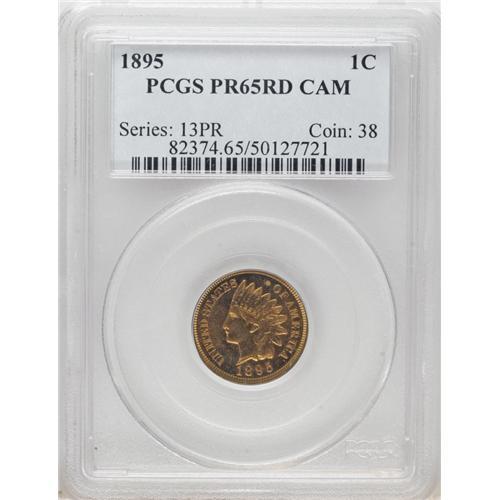 <B>1895 1C PR65 Red Cameo PCGS.</B></I> Both sides are fully lustrous with lovely medium orange color. The strike is bold in virtually all areas, a feature that, when combined with a light endowment of mint frost, allows the devices to stand in appreciable contrast to the smooth, reflective fields. A few trivial carbon flecks are well within the context of the assigned grade, and one toning spot is seen to the left of the O of OF on the obverse. Population: 4 in 65 Red Cameo, 1 finer (1/07).<BR><BR><b>Shipping:</b> Coins & Currency (<a target="_blank" href="http://www.heritageauctions.com/common/shipping.php">view shipping information</a>)