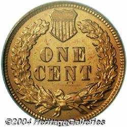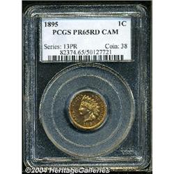 <B>1895<1C> PR65 Red Cameo PCGS.</B></I> Both sides are fully lustrous with lovely medium orange color. The strike is full in virtually areas, a feature that, when combined with a light endowment of mint frost, allows the devices to stand in appreciable contrast to the smooth, reflective fields. A few trivial carbon flecks are well within the context of the assigned grade, and one toning spot is seen to the left of the O of OF on the obverse. PCGS reports a mere three 1895 Indian Cents in PR65 Cameo, and there is only one finer with this finish (9/04). <BR><BR><B>Important notice:</B> Heritage usually auctions material at the rate of 200-250 lots per hour. On some occasions eBay Live bid software or the Internet may not be able to keep up with the pace of the auction. We recommend placing a realistic absentee bid now as insurance to avoid disappointment. Occasionally the auctioneer may eliminate or reject an eBay Live bid, and the auctioneer may also reopen a lot after the close of the eBay live bidding (usually because we missed an audience bid), and may reject your bid even if it shows you as the winning bidder. By bidding via eBay Live, you agree that Heritage may award the lot to another bidder at its sole discretion under the circumstances described above or any other reasonable circumstances. Since eBay bids are not shown to us until we open the lot on the floor, we treat those bids just like floor bids. In most cases the floor responds before the eBay bid is presented to us, due to Internet lag time, so for consistency we have made it a policy that floor bids are always considered first over tie eBay live bids. Also please note that all Heritage lots purchased through eBay Live carry a 20% Buyer's Premium. Please make sure you read the Terms and Conditions before you bid.