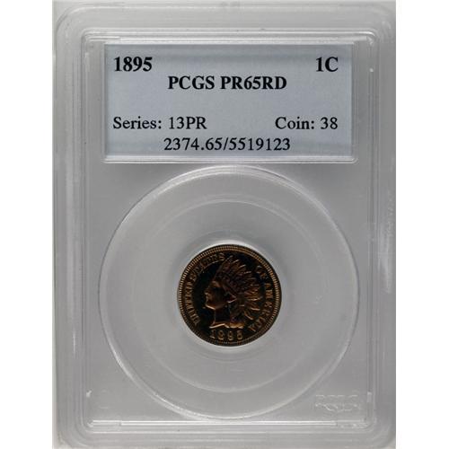 <B>1895<1C> PR65 Red PCGS.</B></I> FS-011.3. Snow-1. The 895 in the date is recut. Ruby-red and peach illuminate this unmarked and boldly impressed Gem. A small spot beneath the ear is noted. The 1895 is challenging in full Red grades. Population: 28 in 65 Red, 18 finer (6/06).<BR><I>From The Empire Tree Collection, Part Two.</B></I>
