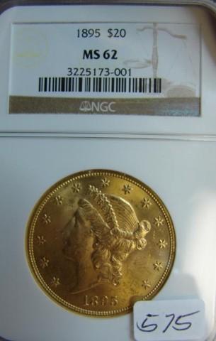 1895 $20.00 Liberty Gold Coin NGC MS 62