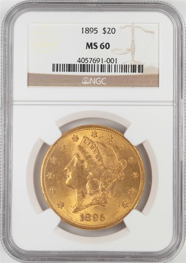 One 1895 $20 Liberty Head Double Eagle Gold Coin NGC MS60. NGC Certified.