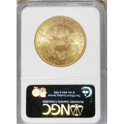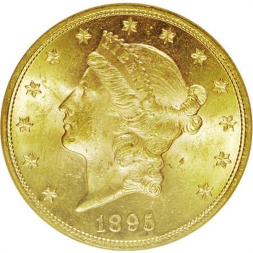 <B>1895 $20 MS62 NGC.</B></I> . NGC Census: (6748/2871). PCGS Population (4617/1546). Mintage: 1,114,656. Numismedia Wsl. Price for NGC/PCGS coin in MS62: $1,065. (#9027)<BR><BR><B>Coin Engraver:</B> James B. Longacre<BR><BR><b>Shipping:</b> Coins & Currency (<a target="_blank" href="http://www.heritageauctions.com/common/shipping.php">view shipping information</a>)