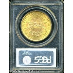 1895 $20 MS62 PCGS. A suitably struck and shimmeri <B>1895 $20 MS62 PCGS.</B></I> A suitably struck and shimmering olive-gold representative. The reverse is particularly devoid of bagmarks. <BR><BR><B>Important notice:</B> Heritage usually auctions material at the rate of 200-250 lots per hour. On some occasions eBay Live bid software or the Internet may not be able to keep up with the pace of the auction. We recommend placing a realistic absentee bid now as insurance to avoid disappointment. Occasionally the auctioneer may eliminate or reject an eBay Live bid, and the auctioneer may also reopen a lot after the close of the eBay live bidding (usually because we missed an audience bid), and may reject your bid even if it shows you as the winning bidder. By bidding via eBay Live, you agree that Heritage may award the lot to another bidder at its sole discretion under the circumstances described above or any other reasonable circumstances. Since eBay bids are not shown to us until we open the lot on the floor, we treat those bids just like floor bids. In most cases the floor responds before the eBay bid is presented to us, due to Internet lag time, so for consistency we have made it a policy that floor bids are always considered first over tie eBay live bids. Also please note that all Heritage lots purchased through eBay Live carry a 20% Buyer's Premium. Please make sure you read the Terms and Conditions before you bid. This lot is being auctioned in conjunction with a live floor auction by Heritage Galleries & Auctioneers. All final auction and invoice information will be supplied by Heritage Galleries & Auctioneers, and all other information should be considered preliminary. Lot:6964