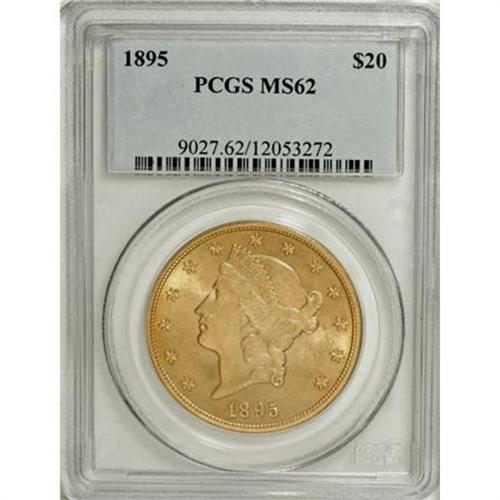 <B>1895 $20 MS62 PCGS.</B></I> PCGS Population (4503/1520). NGC Census: (6602/2848). Mintage: 1,114,656. Numismedia Wsl. Price for NGC/PCGS coin in MS62: $795. (#9027)<BR><BR><B>Coin Engraver:</B> James B. Longacre<BR><BR><b>Shipping:</b> Coins & Currency (<a target="_blank" href="http://www.heritageauctions.com/common/shipping.php">view shipping information</a>)