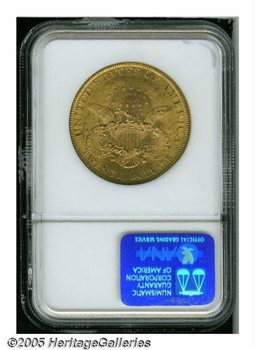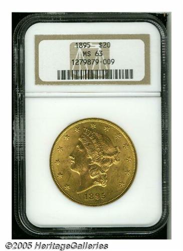 <B>1895<$20> MS63 NGC.</B></I> Well struck and lustrous. The reverse is clean for the grade, but the cheek of Liberty has many individually trivial abrasions.