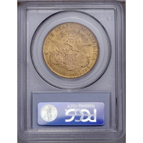 <B>1895<$20> MS63 PCGS.</B></I> A shimmering olive-gold representative. The devices are sharply struck, and the fields are impressive for the MS63 level. Small marks on the cheek determine the grade.