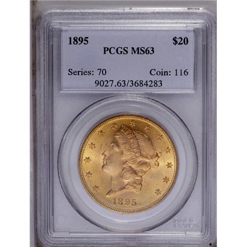 <B>1895<$20> MS63 PCGS.</B></I> Deep peach centers are framed by olive-gold borders. A lustrous and bold example that displays the distributed small marks expected of the grade.
