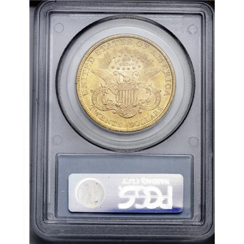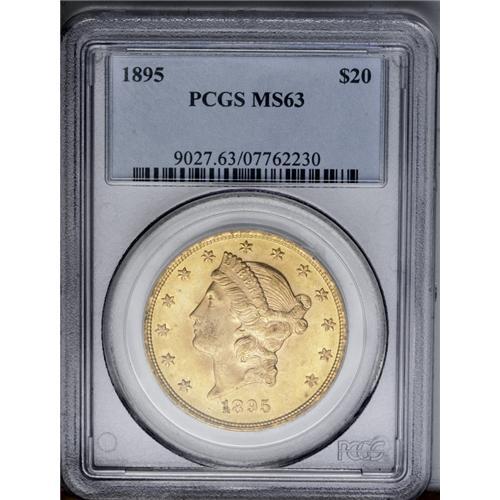 <B>1895<$20> MS63 PCGS.</B></I> Sharply struck design elements prevail over both sides of this lustrous, peach-gold double eagle. Minute contact marks on Liberty's portrait and scuffs in the left obverse field define the grade.