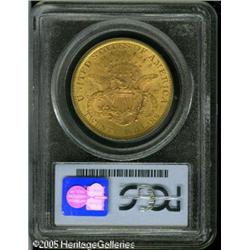 <B>1895 $20 MS63 PCGS.</B></I> Struck in yellow-gold with faint rose accents on both sides. A charcoal black streak is viewed over the reverse of the coin and is noted for accuracy. Lot:9246