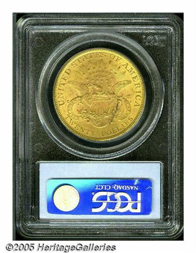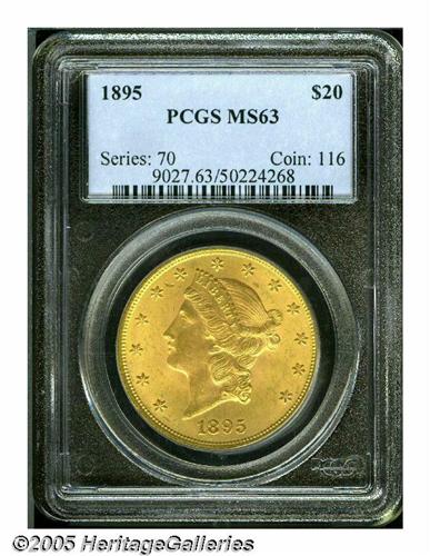 <B>1895<$20> MS63 PCGS.</B></I> The original deep orange-gold surfaces are undisturbed on this lustrous example. A distinctive grease stain (as struck) in seen on the lower right of the reverse.