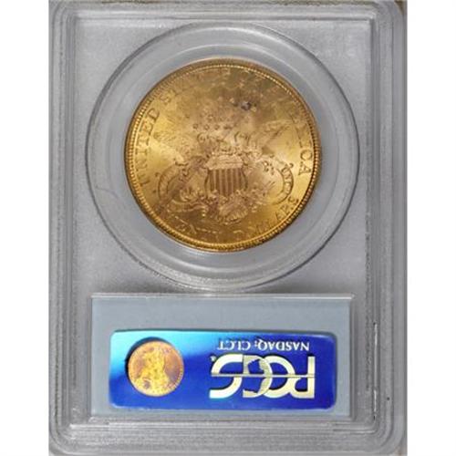 <B>1895 $20 MS63 PCGS.</B></I> This crisply struck and shining Select piece exhibits faint pink accents on the yellow-gold obverse. The reverse shows a long alloy streak that stretches from the lower left reverse rim to the upper right. Nevertheless, this Philadelphia double eagle displays attractively.<BR><BR><B>Coin Engraver:</B> James B. Longacre<BR><BR><b>Shipping:</b> Coins & Currency (<a target="_blank" href="http://www.heritageauctions.com/common/shipping.php">view shipping information</a>)