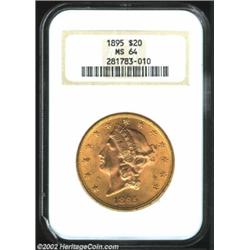 1895 $20 MS64 NGC. A lustrous and well struck near-Gem. A few faint vertical scratches on the holder