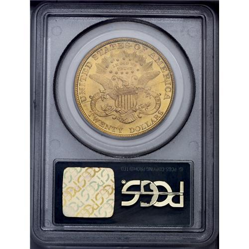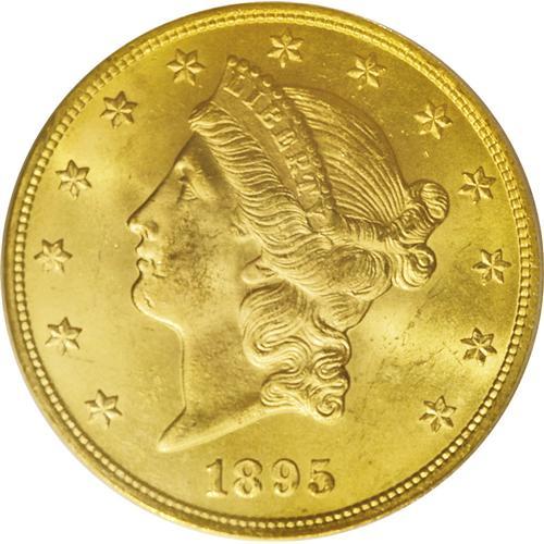 <B>1895<$20> MS64 PCGS.</B></I> The 1895-P is one of the two most common pre-1900 double eagles (the other being the 1899-P). That being said, there are few near-Gems available and Gems are very rare. This splendid piece has bright green-golden mint luster that is virtually undisturbed by post-striking impairments. Fully struck throughout, and housed in an earlier PCGS holder with a green insert. PCGS has certified two coins finer (6/06).