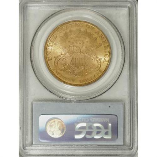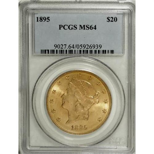 <B>1895 $20 MS64 PCGS.</B></I> A vibrant Choice representative of this late 19th century P-mint issue, solidly struck with strongly lustrous yellow-gold surfaces. A small copper spot is noted at Liberty's throat. PCGS has certified just two coins finer (7/07).<BR><BR><B>Coin Engraver:</B> James B. Longacre<BR><BR><b>Shipping:</b> Coins & Currency (<a target="_blank" href="http://www.heritageauctions.com/common/shipping.php">view shipping information</a>\)