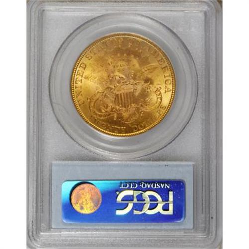 <B>1895 $20 MS64 PCGS.</B></I> Unblemished fields and dazzling luster affirm the quality of this precisely struck example. Thorough evaluation beneath a loupe finds a few faded marks on the cheek. As of (6/07), PCGS has only certified two pieces finer.<BR><BR><B>Coin Engraver:</B> James B. Longacre<BR><BR><b>Shipping:</b> Coins & Currency (<a target="_blank" href="http://www.heritageauctions.com/common/shipping.php">view shipping information</a>\)