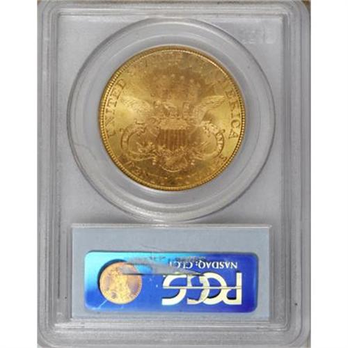 <B>1895 $20 MS64 PCGS.</B></I> The lustrous surfaces of this P-mint piece display lovely lime-green and rose patina, and the design elements exhibit a razor-sharp strike. Exceedingly elusive as a Gem; PCGS has graded just two pieces finer (6/07).<BR><BR><B>Coin Engraver:</B> James B. Longacre<BR><BR><b>Shipping:</b> Coins & Currency (<a target="_blank" href="http://www.heritageauctions.com/common/shipping.php">view shipping information</a>\)