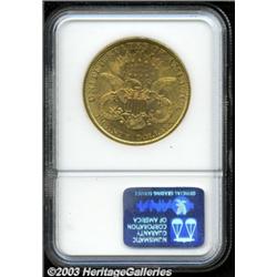 1895 $20 MS65 NGC. This is a conditionally rare Gem, with magnificent luster and exquisitely preserved surfaces. A few scattered abrasions are visible under close inspection, the largest and most distracting of which are a couple of dark luster grazes on Liberty's neck and lower crown. A common issue in lower grades, at the MS65 level the 1895 Double Eagle is a rarity that is seldom seen, and none have been graded any higher, by either of the major services. Population: 9 in 65, 0 finer (11/03). Important notice: Heritage usually auctions material at the rate of 200-250 lots per hour. On some occasions eBay Live bid software or the Internet may not be able to keep up with the pace of the auction. We recommend placing a realistic absentee bid now as insurance to avoid disappointment. Occasionally the auctioneer may eliminate or reject an eBay Live bid, and the auctioneer may also reopen a lot after the close of the eBay live bidding (usually because we missed an audience bid), and may reject your bid even if it shows you as the winning bidder. By bidding via eBay Live, you agree that Heritage may award the lot to another bidder at its sole discretion under the circumstances described above or any other reasonable circumstances. Also please note that all Heritage lots purchased through eBay Live carry a 20% Buyer's Premium. Please make sure you read the Terms and Conditions before you bid.