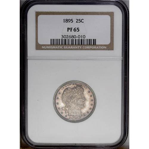 <B>1895<25C> PR65 NGC.</B></I> Both sides are deeply toned in charcoal-lavender shades, with reddish russet undertones visible at select angles. Sharply struck, the underlying surfaces are free of distracting hairlines and/or contact marks. One of a mintage of only 880 proofs.