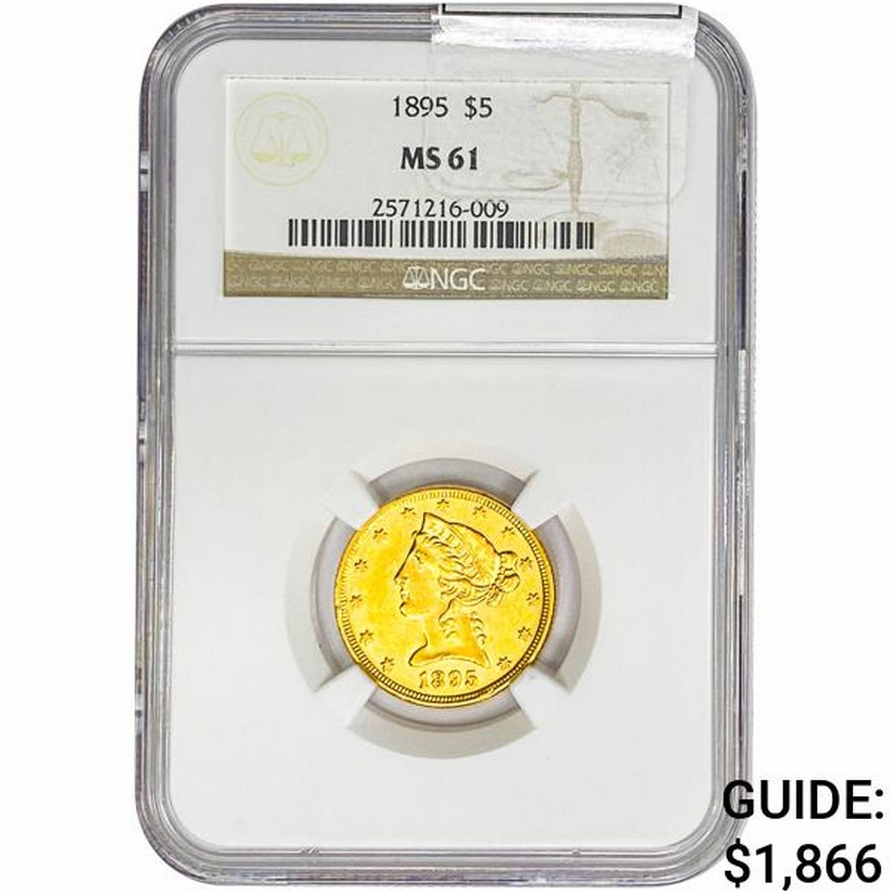 1895 $5 Gold Half Eagle NGC MS61