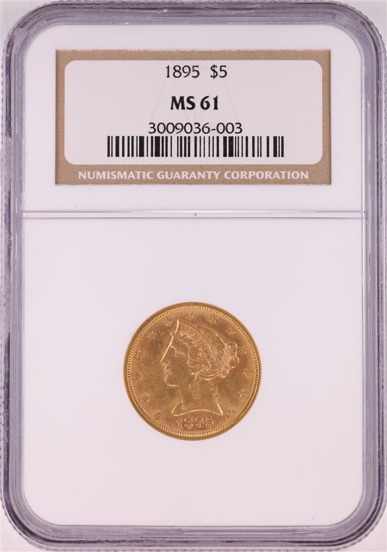 One 1895 $5 Liberty Head Half Eagle Coin NGC MS61. NGC Certified.
