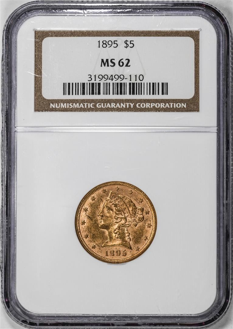 One 1895 $5 Liberty Head Half Eagle Coin NGC MS62. NGC Certified.