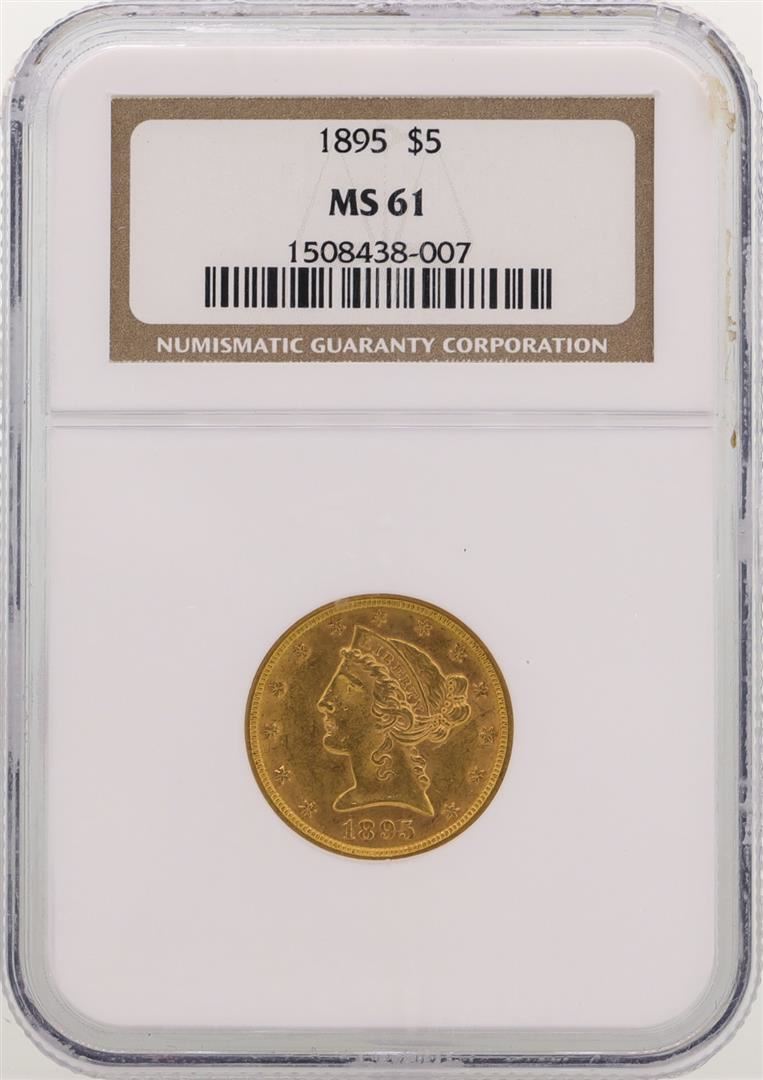 One 1895 $5 Liberty Head Half Eagle Gold Coin NGC MS61. NGC Certified.