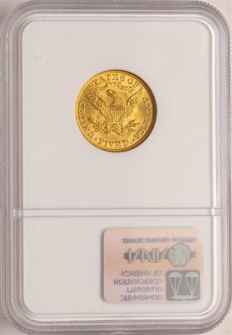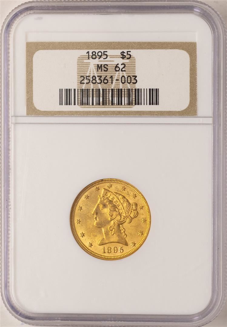 One 1895 $5 Liberty Head Half Eagle Gold Coin NGC MS62. NGC Certified.