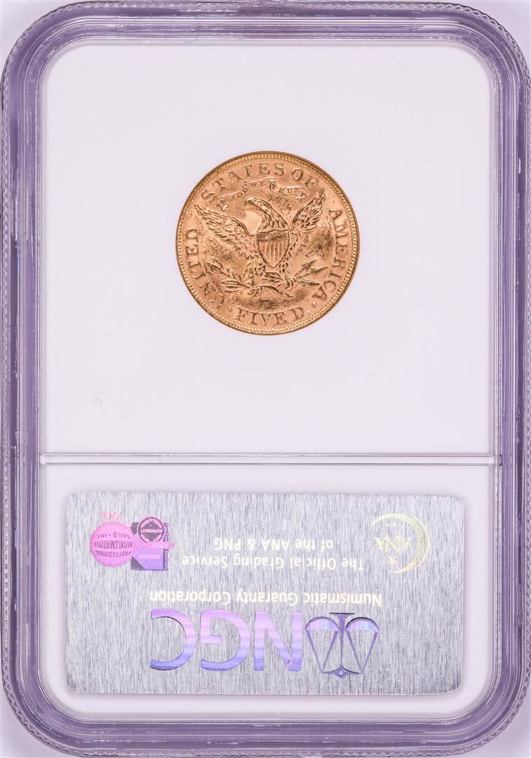 One 1895 $5 Liberty Head Half Eagle Gold Coin NGC MS62. NGC Certified.