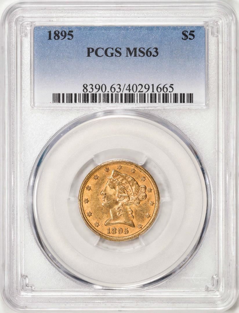 One 1895 $5 Liberty Head Half Eagle Gold Coin PCGS MS63. PCGS Graded.
