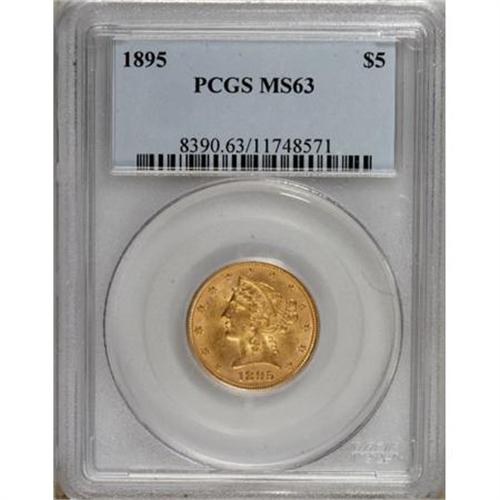 <B>1895 $5 MS63 PCGS.</B></I> PCGS Population (425/109). NGC Census: (960/392). Mintage: 1,345,936. Numismedia Wsl. Price for NGC/PCGS coin in MS63: $670. (#8390)<BR><BR><B>Coin Engraver:</B> Christian Gobrecht<BR><BR><b>Shipping:</b> Coins & Currency (<a target="_blank" href="http://www.heritageauctions.com/common/shipping.php">view shipping information</a>)