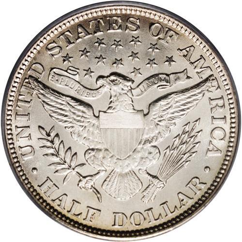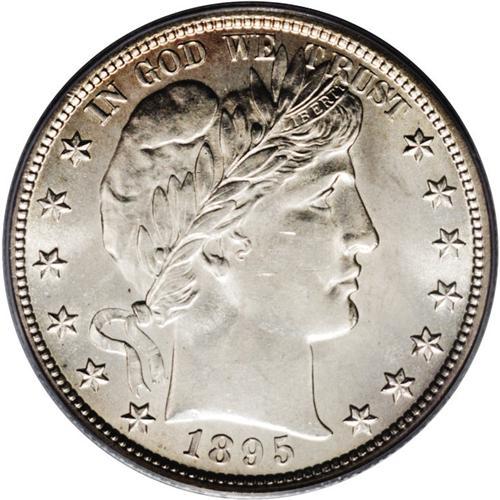 1895 50C MS64 PCGS. A sharply struck near-Gem, seeming