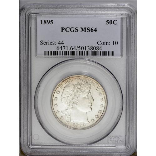 <B>1895<50C> MS64 PCGS.</B></I> A sharply struck near-Gem, seemingly mark-free, and exhibiting rich, frosty luster. This coin has great eye appeal, and will be desired by those collectors who prefer white, or nearly white, coins. <BR><BR><B>Important notice:</B> Heritage usually auctions material at the rate of 200-250 lots per hour. On some occasions eBay Live bid software or the Internet may not be able to keep up with the pace of the auction. We recommend placing a realistic absentee bid now as insurance to avoid disappointment. Occasionally the auctioneer may eliminate or reject an eBay Live bid, and the auctioneer may also reopen a lot after the close of the eBay live bidding (usually because we missed an audience bid), and may reject your bid even if it shows you as the winning bidder. By bidding via eBay Live, you agree that Heritage may award the lot to another bidder at its sole discretion under the circumstances described above or any other reasonable circumstances. Since eBay bids are not shown to us until we open the lot on the floor, we treat those bids just like floor bids. In most cases the floor responds before the eBay bid is presented to us, due to Internet lag time, so for consistency we have made it a policy that floor bids are always considered first over tie eBay live bids. Also please note that all Heritage lots purchased through eBay Live carry a 20% Buyer's Premium. Please make sure you read the Terms and Conditions before you bid. This lot is being auctioned in conjunction with a live floor auction by Heritage Galleries & Auctioneers. All final auction and invoice information will be supplied by Heritage Galleries & Auctioneers, and all other information should be considered preliminary. Lot:2050 <BR><BR><B>Winning Notification and Billing:</B> After the FINAL session in this auction is complete, Heritage will send e-mail and snail mail invoices. This process normally takes several days. All final auction and invoice information will be supplied by Heritage Galleries & Auctioneers, and all other information should be considered preliminary. <BR><BR>This auction will be conducted on a live auction floor and over the Internet through eBay Live. If you choose to place an absentee bid, please take a moment to <font color='#0000ff'><u><a href='http://pages.ebay.com/liveauctions/help/before/laabsentee.html'>learn how eBay Live absentee bidding works</a></u></font><font color='#000000'>
