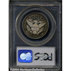 <B>1895<50C> PR66 Cameo PCGS.</B></I> Radiant golden-brown, navy-blue, and rose-violet colors fill the borders and encircle the untoned centers. Exquisitely struck and gorgeously preserved. Only 880 proofs were struck, and high grade Cameo examples are too few in number to satisfy the specialists of this popular series. Population: 2 in 66 Cameo, 4 finer (3/04). <BR><BR><B>Important notice:</B> Heritage usually auctions material at the rate of 200-250 lots per hour. On some occasions eBay Live bid software or the Internet may not be able to keep up with the pace of the auction. We recommend placing a realistic absentee bid now as insurance to avoid disappointment. Occasionally the auctioneer may eliminate or reject an eBay Live bid, and the auctioneer may also reopen a lot after the close of the eBay live bidding (usually because we missed an audience bid), and may reject your bid even if it shows you as the winning bidder. By bidding via eBay Live, you agree that Heritage may award the lot to another bidder at its sole discretion under the circumstances described above or any other reasonable circumstances. Since eBay bids are not shown to us until we open the lot on the floor, we treat those bids just like floor bids. In most cases the floor responds before the eBay bid is presented to us, due to Internet lag time, so for consistency we have made it a policy that floor bids are always considered first over tie eBay live bids. Also please note that all Heritage lots purchased through eBay Live carry a 20% Buyer's Premium. Please make sure you read the Terms and Conditions before you bid.