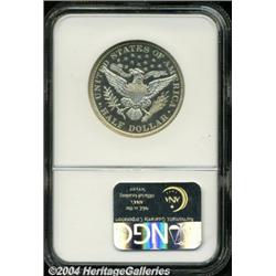 <B>1895<50C> PR67 NGC.</B></I> As a date, the 1895 Barber half dollar is not a rare coin in either business strike or proof formats. Since specimen strikings were generally well preserved by collectors at the time, one might expect that survivors of the 800 piece proof delivery are relatively obtainable in today's market. They are, at least in grades up to and including the PR64 level of preservation. Gems, however, are scarce, and Superb Gems are of the utmost rarity and desirability. This silver-white example is untoned and both sides are fully brought up with frosted devices and reflective fields that are worthy of a Cameo designation, at least on the reverse. The nicest proof 1895 half that this cataloger has seen in quite some time. Population: 20 in 67, 10 finer (4/04). <BR><BR><B>Important notice:</B> Heritage usually auctions material at the rate of 200-250 lots per hour. On some occasions eBay Live bid software or the Internet may not be able to keep up with the pace of the auction. We recommend placing a realistic absentee bid now as insurance to avoid disappointment. Occasionally the auctioneer may eliminate or reject an eBay Live bid, and the auctioneer may also reopen a lot after the close of the eBay live bidding (usually because we missed an audience bid), and may reject your bid even if it shows you as the winning bidder. By bidding via eBay Live, you agree that Heritage may award the lot to another bidder at its sole discretion under the circumstances described above or any other reasonable circumstances. Since eBay bids are not shown to us until we open the lot on the floor, we treat those bids just like floor bids. In most cases the floor responds before the eBay bid is presented to us, due to Internet lag time, so for consistency we have made it a policy that floor bids are always considered first over tie eBay live bids. Also please note that all Heritage lots purchased through eBay Live carry a 20% Buyer's Premium. Please make sure you read the Terms and Conditions before you bid.