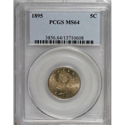 <B>1895 5C MS64 PCGS.</B></I> PCGS Population (98/57). NGC Census: (117/47). Mintage: 9,979,884. Numismedia Wsl. Price for NGC/PCGS coin in MS64: $400. (#3856)<BR><BR><B>Coin Engraver:</B> Charles E. Barber<BR><BR><b>Shipping:</b> Coins & Currency (<a target="_blank" href="http://www.heritageauctions.com/common/shipping.php">view shipping information</a>)