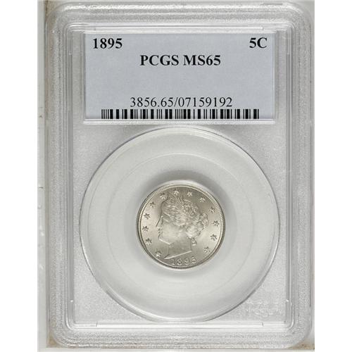 <B>1895<5C> MS65 PCGS.</B></I> Bright and lustrous with no signs of specks or contact marks readily apparent on the reverse, and the obverse has just a few tiny abrasions on Liberty's cheek. About as nice as this date is ever found, and a worthy coin for the date collector who demands Gem quality. Population: 38 in 65, 6 finer (7/06).