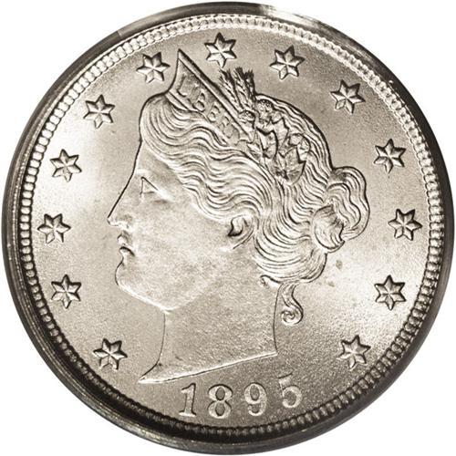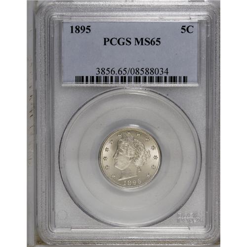 <B>1895<5C> MS65 PCGS.</B></I> Light green-gray toning endows this lustrous and beautifully smooth Gem. The strike is uncharacteristically bold for a business strike, particularly on the forehead curls and the left ear of corn. The 1895 is a better date with a mintage of less than 10 million pieces. Population: 40 in 65, 6 finer (9/06).