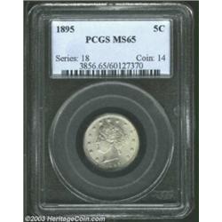 <TABLE cellSpacing=0 cellPadding=0 width="100%" bgColor=#000000 border=0><TBODY><TR><TD width="100%"><TABLE cellSpacing=1 cellPadding=3 width="100%" border=0><TBODY><TR><TD width="100%" bgColor=#79735c><FONT face=arial color=#ffffff size=3><B>Description</B> </FONT></TD></TR><TR><TD width="100%" bgColor=#ffffff><FONT face=arial size=2><B>1895 5C MS65 PCGS.</B></I> Exceptionally lustrous, typically struck, and with few noticeable abrasions atop the surfaces. For the most part untoned with several small toning spots on the obverse surfaces that keep the piece from full brilliance. </FONT></TD></TR></TBODY></TABLE></TD></TR></TBODY></TABLE><BR><A name=PricesRealized></A><TABLE cellSpacing=0 cellPadding=0 width="100%" bgColor=#000000 border=0><TBODY><TR><TD width="100%"><TABLE cellSpacing=1 cellPadding=3 width="100%" border=0><TBODY><TR><TD width="100%" bgColor=#79735c><A name=PR><FONT face=arial color=#ffffff size=3><B>Previous Prices from Heritage Auctions</B> </FONT></A></TD></TR><TR><TD bgColor=#f6f6ed><TABLE cellSpacing=0 cellPadding=0 width="100%" border=1><TBODY><TR><TD align=middle width="33%"><B>Date</B></TD><TD align=middle width="33%"><B>Service</B></TD><TD align=middle width="33%"><B>Price</B></TD></TR><TR bgColor=whitesmoke><TD width="33%"><B>09/28/2002</B></TD><TD width="33%">PCGS</TD><TD width="33%">$1,840.00</TD></TR><TR bgColor=whitesmoke><TD width="33%"><B>01/01/1995</B></TD><TD width="33%">PCGS</TD><TD width="33%">$798.00</TD></TR><TR bgColor=whitesmoke><TD width="33%"><B>04/23/1999</B></TD><TD width="33%">NGC</TD><TD width="33%">$690.00</TD></TR><TR bgColor=whitesmoke><TD width="33%"><B>06/06/1998</B></TD><TD width="33%">NGC</TD><TD width="33%">$632.50</TD></TR><TR bgColor=whitesmoke><TD width="33%"><B>01/11/1997</B></TD><TD width="33%">NGC</TD><TD width="33%">$546.25</TD></TR></TBODY></TABLE></TD></TR><TR><TD bgColor=#ffffff><FONT face=arial size=1 ?>PLEASE NOTE: All prices realized reflect the final hammer price PLUS the buyer's premium in auctions that charge a buyer's premium. Each item has a notation at the top of the listing indicating whether that lot included a buyer's premium. Example: A item that sells with a final hammer price of $100 and a 20% buyer's premium will display with a price realized of $120. All information listed is intended to be as accurate as possible, but errors are possible. Please use this guide carefully and inform us of any inaccuracies. </FONT></TD></TR></TBODY></TABLE></TD></TR></TBODY></TABLE><BR><TABLE cellSpacing=0 cellPadding=0 width="100%" bgColor=#000000 border=0><TBODY><TR><TD width="100%"><TABLE cellSpacing=1 cellPadding=3 width="100%" border=0><TBODY><TR><TD width="100%" bgColor=#79735c colSpan=6><FONT face=arial color=#ffffff size=3><B>Price Guide*</B> </FONT></TD></TR><TR bgColor=#f6f6ed><TD align=middle><B>Grade</B> </TD><TD align=middle><B>Coin World<BR>(Trends)</B> </TD><TD align=middle><B>Numismedia<BR>Retail</B> </TD><TD align=middle><B>Numismedia<BR>Wholesale</B> </TD><TD align=middle><B>Coin<BR>Universe</B> </TD><TD align=middle><B>Heritage<BR>Value Index</B> </TD></TR><TR bgColor=#ffffff><TD align=middle>64</TD><TD align=right>$325.00</TD><TD align=right>$335.00</TD><TD align=right>$268.00</TD><TD align=right>$295.00</TD><TD align=right>$240.75</TD></TR><TR style="FONT-WEIGHT: bold" bgColor=#cccfdd><TD align=middle>65</TD><TD align=right>$1,765.00</TD><TD align=right>---</TD><TD align=right>$940.00</TD><TD align=right>$1,800.00</TD><TD align=right>$1,393.88</TD></TR><TR bgColor=#ffffff><TD align=middle>66</TD><TD align=right>$3,150.00</TD><TD align=right>---</TD><TD align=right>$1,400.00</TD><TD align=right>---</TD><TD align=right>$2,205.00</TD></TR><TR bgColor=#ffffff><TD colSpan=6><FONT size=1>*All information listed is intended to be as accurate as possible, but errors are possible. No item may be returned or refused based on this information which is provided as a service to our customers. You should contact each pricing source directly to determine the accuracy of this information. </FONT></TD></TR></TBODY></TABLE></TD></TR></TBODY></TABLE><BR><TABLE cellSpacing=0 cellPadding=0 width="100%" bgColor=#000000 border=0><TBODY><TR><TD width="100%"><TABLE cellSpacing=1 cellPadding=3 width="100%" border=0><TBODY><TR><TD width="100%" bgColor=#79735c><FONT face=arial color=#ffffff size=3><B>Population Guide</B> </FONT></TD></TR><TR bgColor=#ffffff><TD align=middle><!-- Begin Output of Population Grid--><TABLE cellSpacing=0 cellPadding=0 width="100%" border=0><TBODY><TR><TD vAlign=center><TABLE cellSpacing=0 width="100%" border=1 cellsadding="3"><TBODY><TR><TD vAlign=center><TABLE cellSpacing=0 cellPadding=3 width="100%" border=1><TBODY><TR><TD vAlign=center align=middle bgColor=#f0f1e8 colSpan=2 <CENTER><FONT face=Arial size=2><B>PCGS Pop </B></FONT><CENTER></CENTER></TD><TD vAlign=center align=middle bgColor=#f0f1e8 colSpan=2><CENTER><FONT face=Arial size=2><B>NGC Pop</B></CENTER></FONT></TD></TR><TR><TD vAlign=center><FONT face=Arial size=2>(65)</FONT> </TD><TD vAlign=center align=right><FONT face=Arial size=2>19</FONT> </TD><TD vAlign=center><FONT face=Arial size=2>(65)</FONT> </TD><TD vAlign=center align=right><FONT face=Arial size=2>33</FONT> </TD></TR><TR><TD vAlign=center><FONT face=Arial size=2>(>65)</FONT> </TD><TD vAlign=center align=right><FONT face=Arial size=2>3</FONT> </TD><TD vAlign=center><FONT face=Arial size=2>(>65)</FONT> </TD><TD vAlign=center align=right><FONT face=Arial size=2>7</FONT> </TD></TR></TBODY></TABLE></TD></TR></TBODY></TABLE></TD></TR></TBODY></TABLE><!-- End Output of Population Grid--> Important notice: Heritage usually auctions material at the rate of 200-250 lots per hour. On some occasions eBay Live bid software or the Internet may not be able to keep up with the pace of the auction. We recommend placing a realistic absentee bid now as insurance to avoid disappointment. Occasionally the auctioneer may eliminate or reject an eBay Live bid, and the auctioneer may also reopen a lot after 