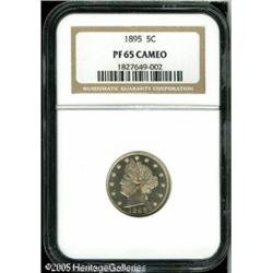 <B>1895 5C PR65 Cameo NGC.</B></I> Exquisitely well struck, and a touch of faint tan color on the central reverse. The surfaces have been lovingly preserved. Population: 13 in 65, 6 finer (1/05). Lot:5929