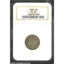 1895 5C PR65 NGC. Lovely streaks of green-gray and powder-blue patina. A needle-sharp and impressive