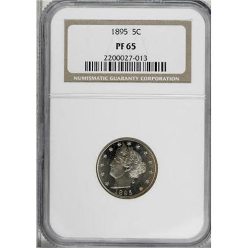 <B>1895 5C PR65 NGC.</B></I> NGC Census: (105/38). PCGS Population (78/13). Mintage: 2,062. Numismedia Wsl. Price for NGC/PCGS coin in PR65: $535. (#3893)<BR><BR><B>Coin Engraver:</B> Charles E. Barber<BR><BR><b>Shipping:</b> Coins & Currency (<a target="_blank" href="http://www.heritageauctions.com/common/shipping.php">view shipping information</a>)