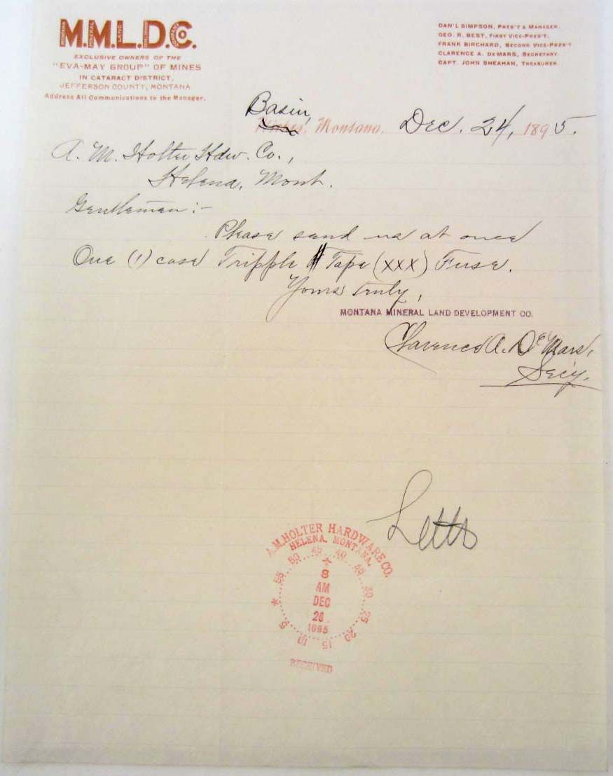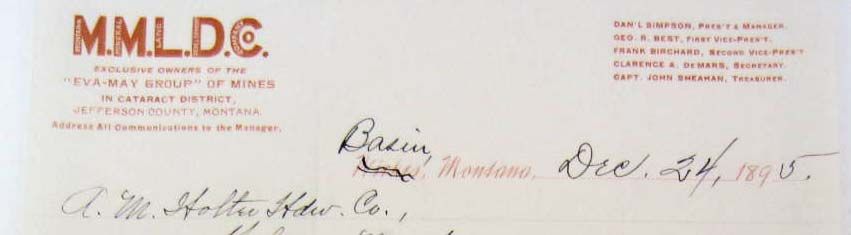 1895 BILLHEAD RECEIPT MONTANA MINERAL LAND DEVELOPMENT